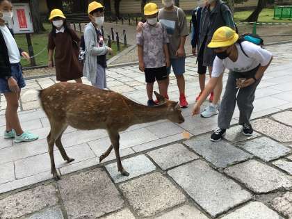 修学旅行2日目 22 奈良公園 公開日 2022/09/29 更新日 2022/09/29 お知らせ 東大寺見学のあとは奈良公園で班別活動。鹿と触れ合いました。中には鹿せんべいを購入し、鹿にあげている子も。鹿に囲まれて大人気でした。