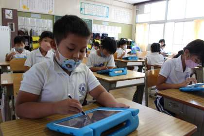 1年4組の授業の様子です。学習用タブレットを上手に使って学習中です。