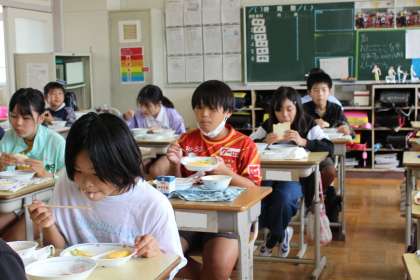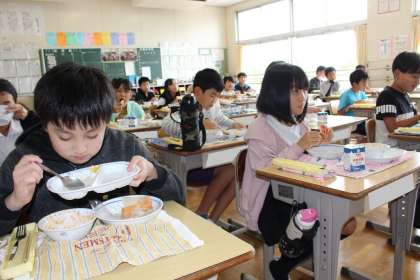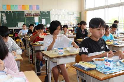 6年1組の給食の様子です。落ち着いて会食している様子が写真から伝わってきますね。