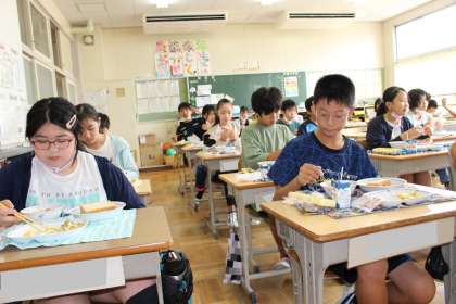 6年3組の給食の様子です。おいしい給食に感謝、ですね!!