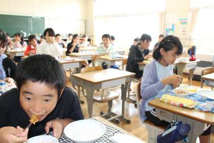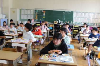 6年4組の給食の様子です。明日は前期最終日です。後期のいいスタートを切るためにも、前期の締めくくりをしっかりとしましょうね。