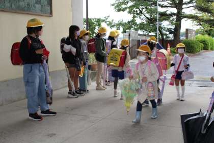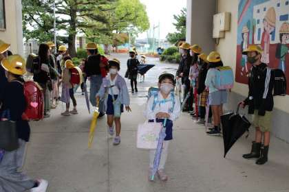 今日は前期最終登校日でした。雨の中、あいさつ委員やボランティアの子たちがあいさつ運動を行ってくれました。