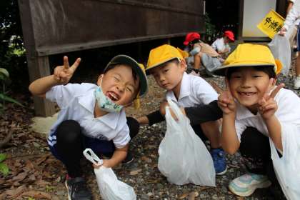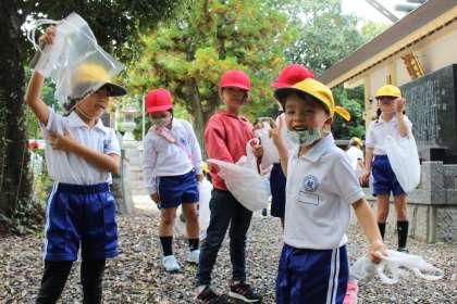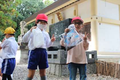1年生がどんぐりひろいで中根神社に出かけました。天候もよく、絶好のどんぐりひろい日和でした。まずは1年1組,2組の様子です。