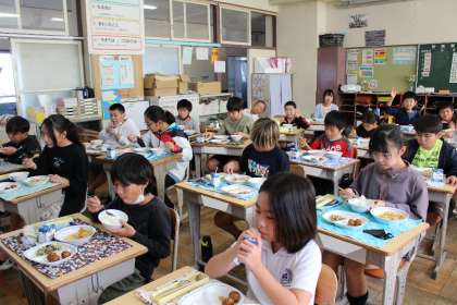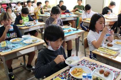 5年2組の給食の様子です。好き嫌いせず、しっかりと食べることができています。