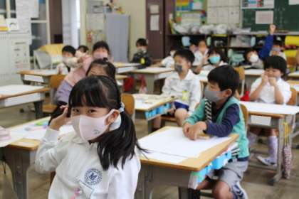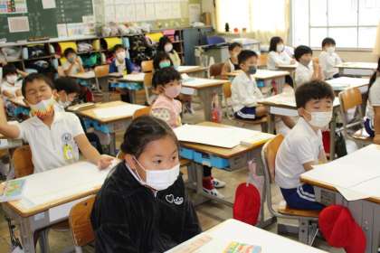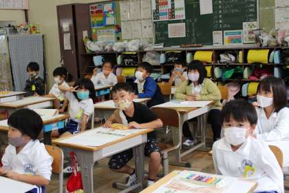 1年5組の図工の授業の様子です。どの子も上手に絵がかけています。作品の完成が楽しみですね。