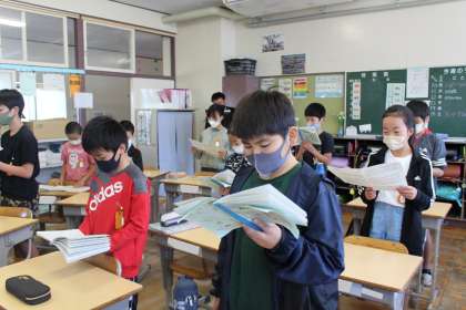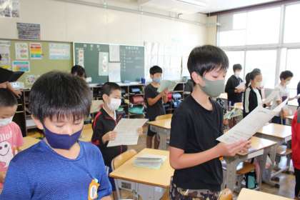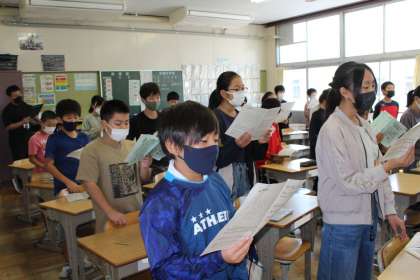 5年2組は野外学習で歌う合唱曲「大切なもの」を練習していました。きれいな歌声が教室中に響き渡りました。