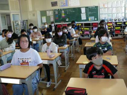 6年2組の朝の活動の様子です。いじめ防止について、真剣に考えることができました。写真からも真剣な表情が読み取れますね。