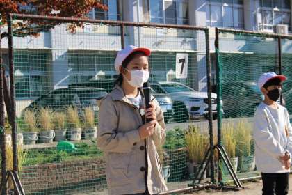続いて各学級の代表児童が野外学習2日間の目標を発表しました。