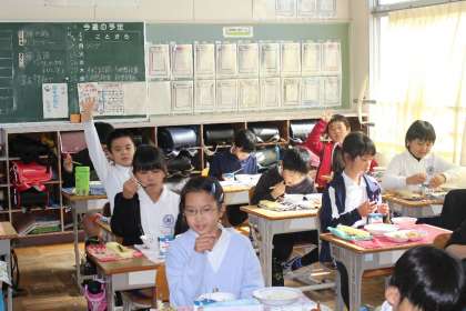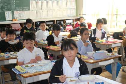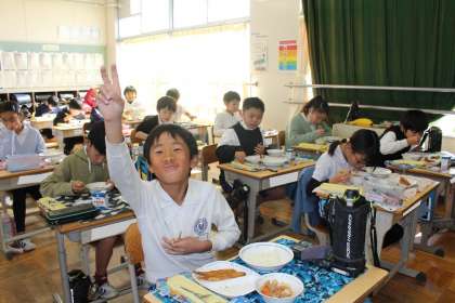 給食の様子 4年3組 公開日 2022/10/26 更新日 2022/10/26 お知らせ 4年3組の給食の様子です。カメラに向かって元気よくポーズをとっていますが、黙食はきちんとできています。えらい!!