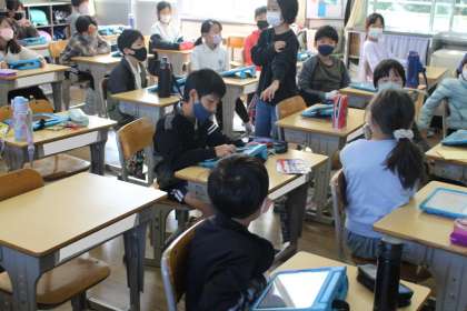 続いて3年1組,2組,3組の授業参観の様子です。集中して授業に臨むことができていました。