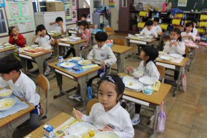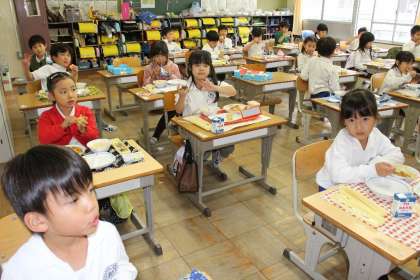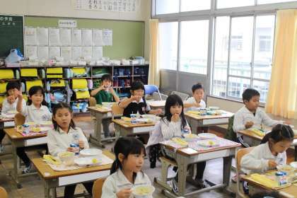 続いて1年4組の給食の様子です。みんなしっかりと食べることができていました。