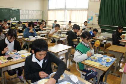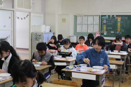 最後は6年4組の給食の様子です。6年生らしく、落ち着いた雰囲気で給食を食べることができていました。
