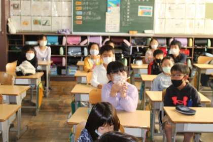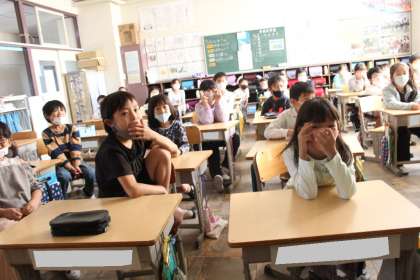 2年2組の授業の様子です。動画を視聴中でした。みんな食い入るように動画に見入っていました。