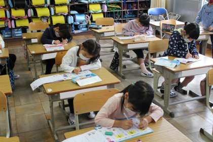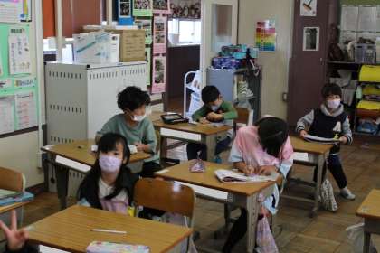 1年4組の国語の授業の様子です。集中して上手な字で漢字の練習をしていました。
