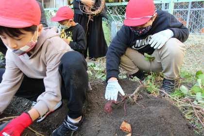 今日はフレンド学級は芋ほりをしました。5月に植えたサツマイモが収穫の時期を迎えました。たくさんのサツマイモが収穫できましたね。