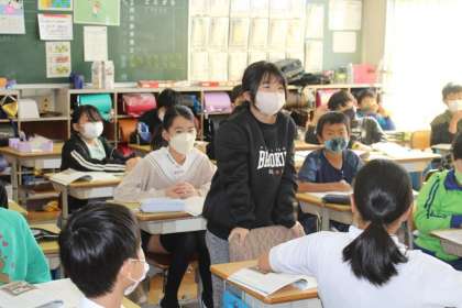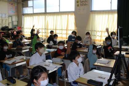 4年4組の授業の様子です。多くの子が積極的に挙手をして発言できています。立派ですね!!