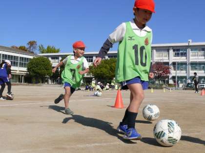 昨日、今日の2日間、名古屋グランパスエイトのスタッフの方がご来校くださり、1,2年生対象に「グランパスボールクリニック」を開催してくださいました。上手なドリブルの仕方を教えていただいたり、ゲーム形式で楽しんだりして、子どもたちは大喜びでした。グランパスのスタッフの皆様、ありがとうございました。まずは昨日の1年生の様子です。
