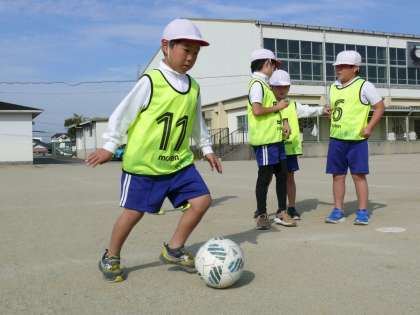 続いて本日行われました、2年生の「グランパスボールクリニック」の様子です。とってもいい天気で、気持ちよく活動できました。男子も女子も、とっても上手にドリブルができていました。