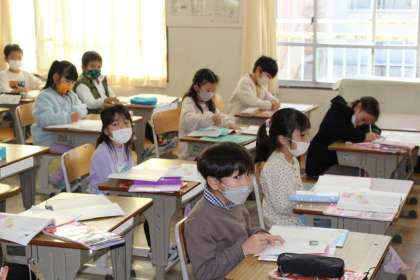 1年4組の授業の様子です。落ち着いた雰囲気で授業に臨むことができています。