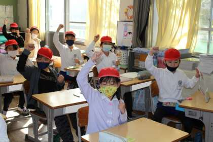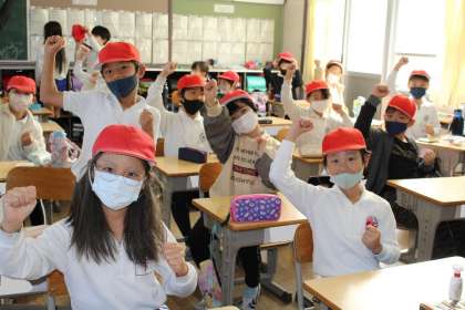3年1組の放課直前の様子です。直後に控えたなわとび週間に向けてクラスで決起集会中です。みんな気合いの入った表情をしていますね。
