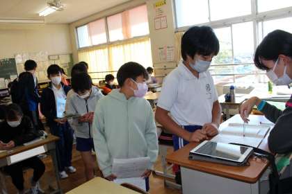 授業の様子 6年1組 公開日 2022/11/25 更新日 2022/11/25 お知らせ 6年1組は卒業文集を書いていました。書けた子から担任の先生と一緒に確認中。どんな文集ができあがるか楽しみですね。