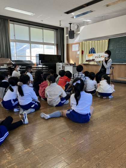 外国語絵本読み聞かせサポーター 公開日 2022/12/02 更新日 2022/12/02 地域学校共働本部 この秋新たにスタートした活動です。 外国語での読み聞かせだけでなく、簡単なアクティビティも行いました。