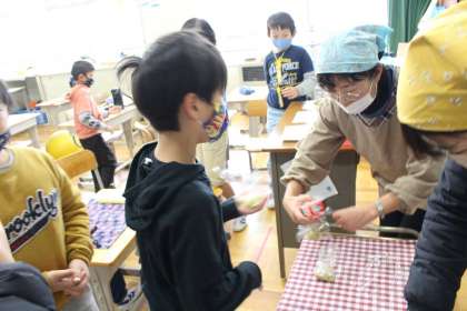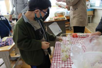 フレンド学級は、先日収穫したサツマイモを使っておいもパーティーを行いました。芋きんとんの形を各自で整えておいしくいただきました。おいもの甘さがとってもおいしく、おかわりをする子もたくさんいました。