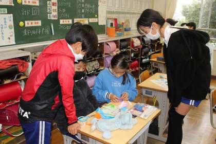 続いて4年1組,2組,3組の授業の様子です。2組では若園小学校の3本柱の1つであるおりがみに精力的に取り組んでいます。友達と一緒にいろいろな作品を折ることができました。