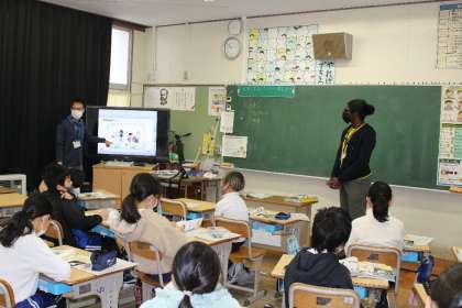 続いて4年4組,5年1組,2組の授業の様子です。5年2組はALTのグレッグ先生と英語の授業中。楽しく英語を学ぶことができていました。