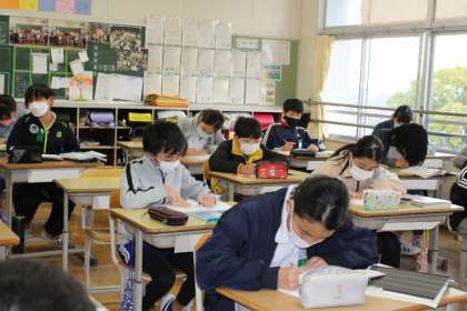 続いて5年3組,4組,6年1組の授業の様子です。とっても落ち着いて授業に臨む様子が写真から伝わってきます。さすが5,6年生ですね!!