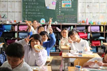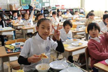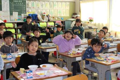 給食の様子 1年5組,2年1組,2組