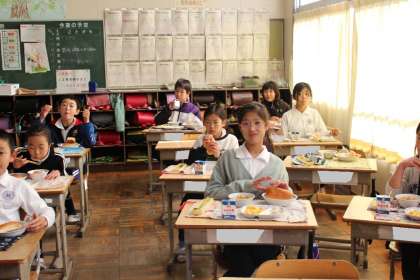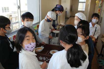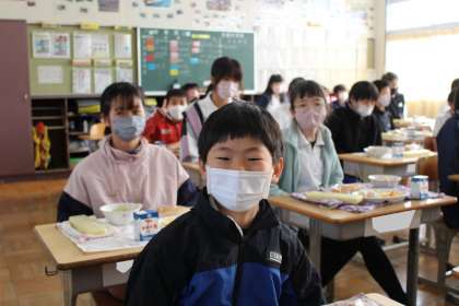 続いて4年4組,5年1組,2組の給食の様子です。おいしい給食に思わず笑顔がこぼれています。今日もおいしい給食に感謝、ですね!!
