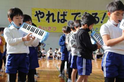 続いて1年生の子たちが鍵盤ハーモニカで「きらきらぼし」を演奏しました。緊張したけど、上手に演奏することができましたね!!