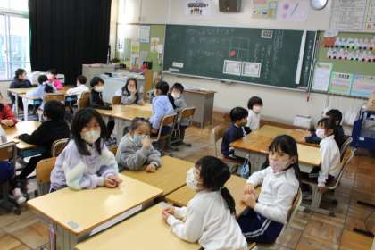 1年1組,3組の朝の会の様子です。1組ではグループで上手に話し合いができていました。