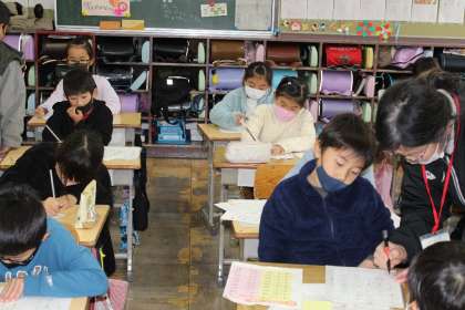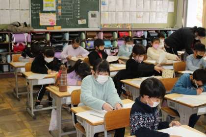 授業の様子 2年3組 公開日 2022/12/22 更新日 2022/12/22 お知らせ 2年3組の授業の様子です。1月に行われる書初め大会に向けて練習中です。集中して上手に書くことができていました。書初め大会もがんばりましょう。