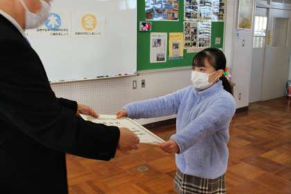 最後にフィギュアスケートで優秀な成績を収めた児童の教育委員会表彰を行いました。