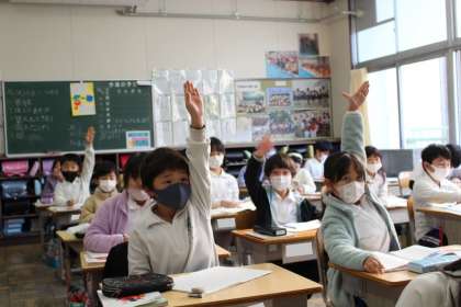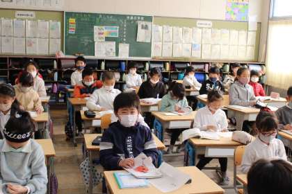 2年1組,2組の国語の授業の様子です。まっすぐあげられた手がとってもかっこいいですね。