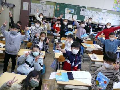 1年5組,2年1組,3年1組の朝の様子です。若小の子どもたちは朝からとっても元気です。