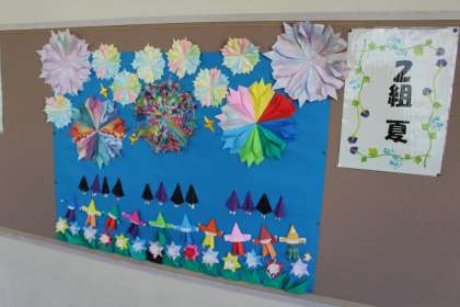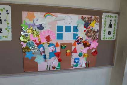 4年生の掲示板の掲示物です。折り紙で季節の掲示物を作成しました。とっても素敵ですね!!