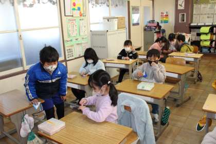 1年4組,2年2組の授業の様子です。1年4組はおりがみを行っていました。上手に折れていましたね。