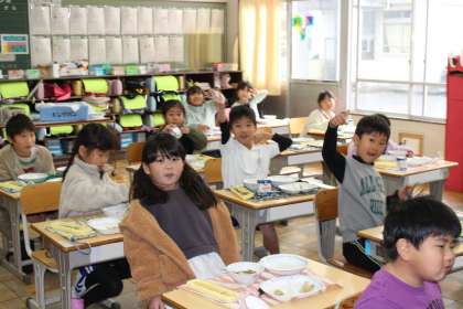 給食の様子 1年1組,2組