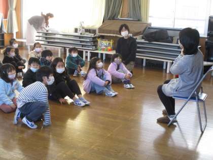 英語での絵本読み聞かせの様子です。 読み聞かせの後で、簡単なアクティビティも行いました。