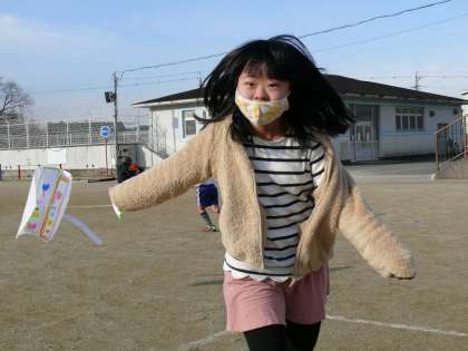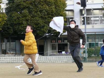 フレンド学級の凧あげの様子の続きです。寒かったですが、子どもたちは楽しく凧あげに取り組みました。