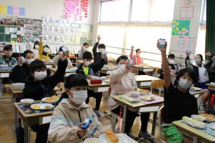 給食の様子 6年1組,2組 公開日 2023/01/25 更新日 2023/01/25 お知らせ 6年1組,2組の給食の様子です。6年1組ではお誕生日の子に向けてハッピーバースデーをみんなで歌い、牛乳で乾杯をしていました。あたたかいクラスの雰囲気がとってもいいですね。