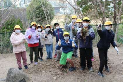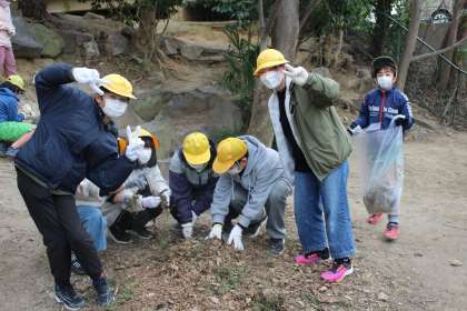 6年生が卒業に向けて「WE LOVE 若小活動」を行ってくれています。6年1組はわかぞのランド周辺の落ち葉拾いをしてくれました。