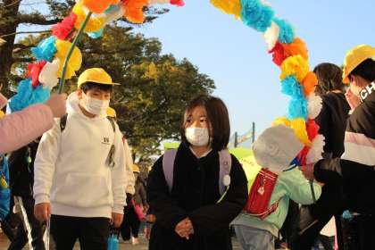 今朝も多くの子たちが自主的にあいさつ運動を行ってくれています。お花のアーチで、登校する子たちをお出迎え。あたたかい雰囲気で朝のスタートができました。