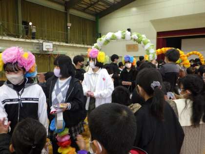 お花のアーチをくぐって退場です。在校生のみんな、本当に素敵な送る会をありがとう。6年生のみんなにとっては毎日当たり前に通っていた若小に通うのも残りわずかとなってきました。残された日々の中で、思い出をまだまだ作っていきましょうね。