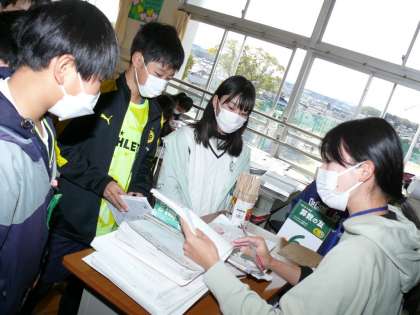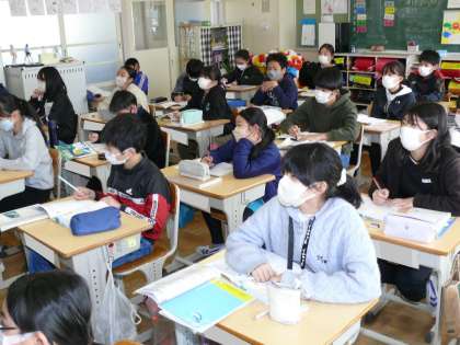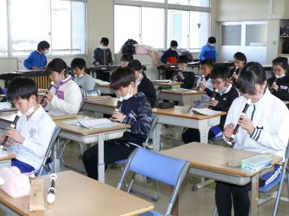 続いて4年4組,6年1組,2組の授業の様子です。4年4組はリコーダーや鉄琴を使って演奏中。きれいな音色が響き渡っていました。