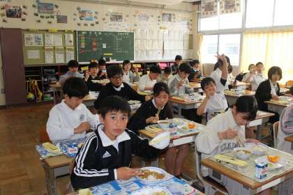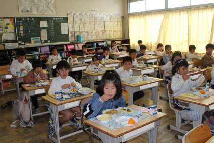 給食の様子 2年4組,5年1組,2組