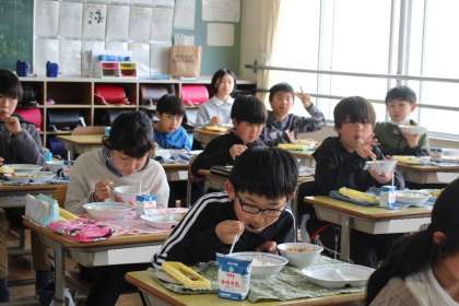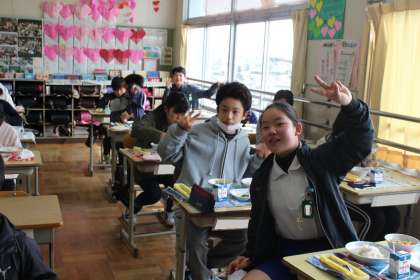 給食の様子 4年4組,6年1組,2組